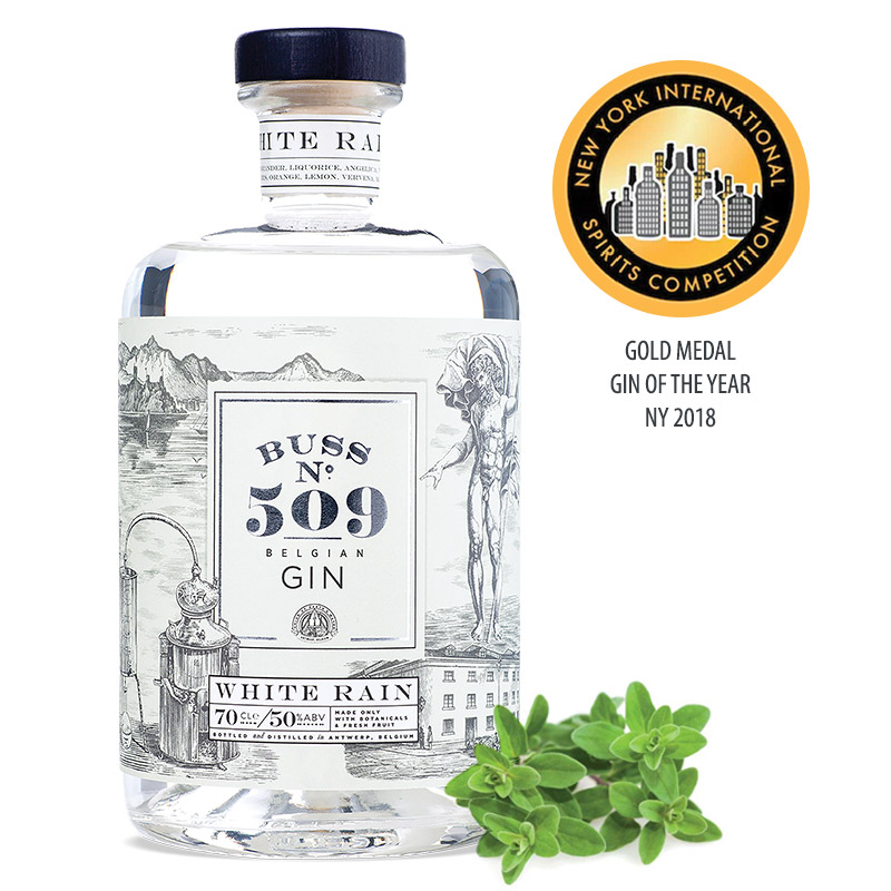 Buss No 509 White Rain Gin produceres af belgiske Buss Spirits, som er startet af Serge Buss i 2013. Serge Buss har baggrund med hele sit liv i restaurationsbranchen, hans far tog ham under sine vinger som barn, da faderen var kok for det belgiske hof. Da Serge blev 18 år, åbnede han sin egen restaurant og har aldrig set sig tilbage siden. Sidenhen skiftede han restauranten ud med Belgiens første Gin & Tonic bar, Bar Bounce i Antwerpen, hvor en kreativ tid, med vilde idéer både fra Serge selv, hans personale og gæster, udviklede sig. Dette førte til at han i 2013 startede sin egen produktion af først gin, og sidenhen rom. Buss Spirits er en vild outsider i spiritus-verdenen som både tør og gør, når det kommer til at gå skridtet længere end alle andre i vilde infusioner og macerationer. Alt sammen med stærke holdninger til kun at bruge de bedste, friske råvarer, til alle hans produkter. Herudover sværger Serge Buss til ikke at tilsætte sukker til nogen af hans produkter. Dette betyder at alle hans vilde infusioner udviser det rene, ærlige ydtryk af frisk frugt og krydderier.